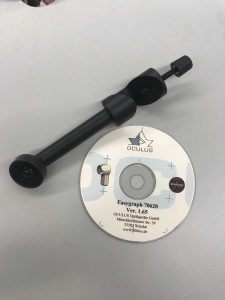 Oculus Easygraph has just been cleaned, tested and the calibration has been confirmed. It includes power supply/USB cable, calibration test eye and the operating database software compatible with Windows 7 is included. A Dell mini PC is included with this sale.
